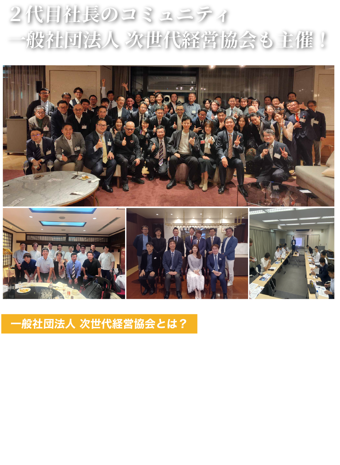 さらに、自身の経験と想いをもとに、全国の2代目社長を元気にするコミュニティ『次世代経営協会』を設立。